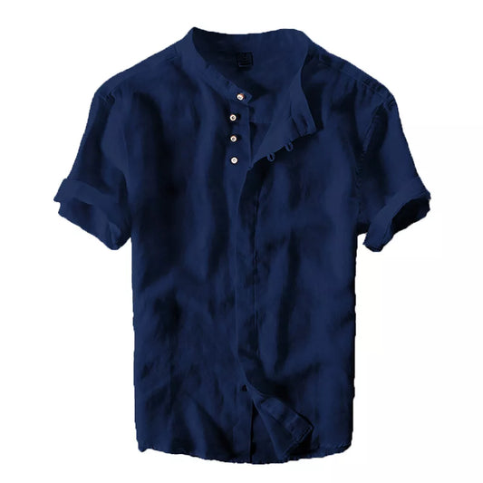 Mens Grandad Casual Shirts Mandarin Smart Shirt Short Sleeve Summer Top RH05