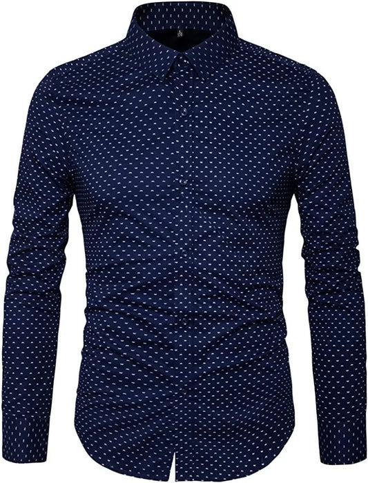 Mens Casual Shirts Smart Printed Polka Shirt Long Sleeve Fashion Top RH14