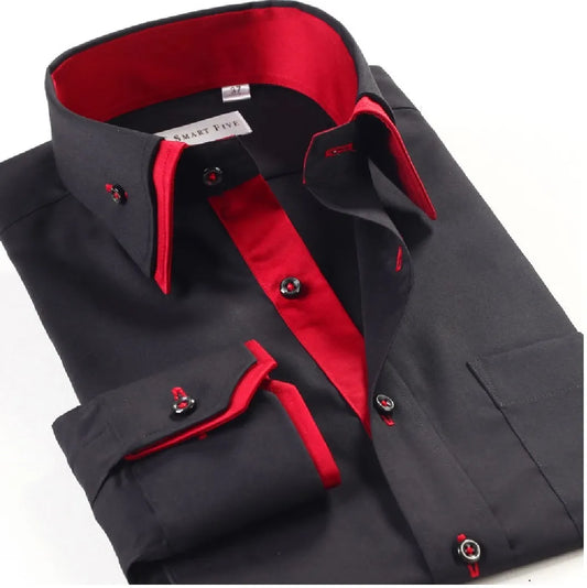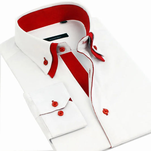 Mens Casual Double Collar Slim Fit Formal Shirt Italian Design Long Sleeve DC01