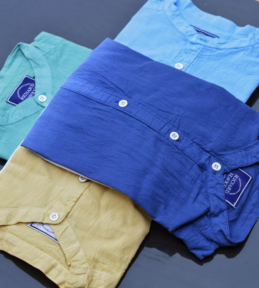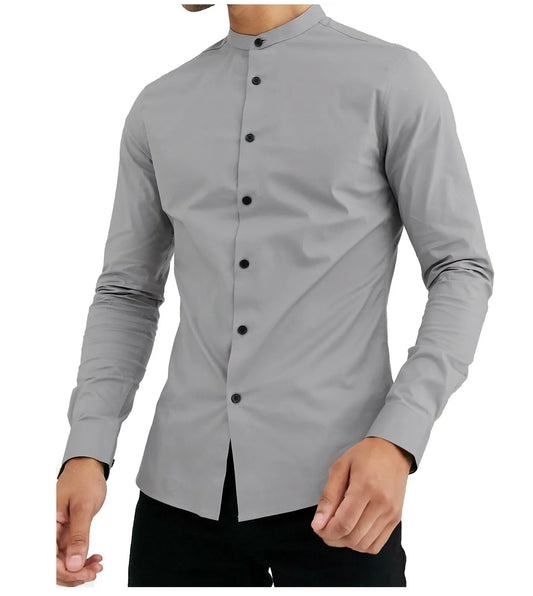 Men's Grandad Long Sleeve Shirts Smart Casual Slim Fit Shirt Mandarin PS 30