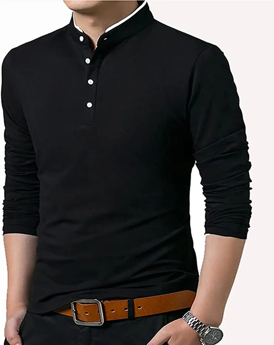 Men's Grandad Shirts Polo Shirt Long Sleeve Mandarin Collar Slim Fit Pique PL14