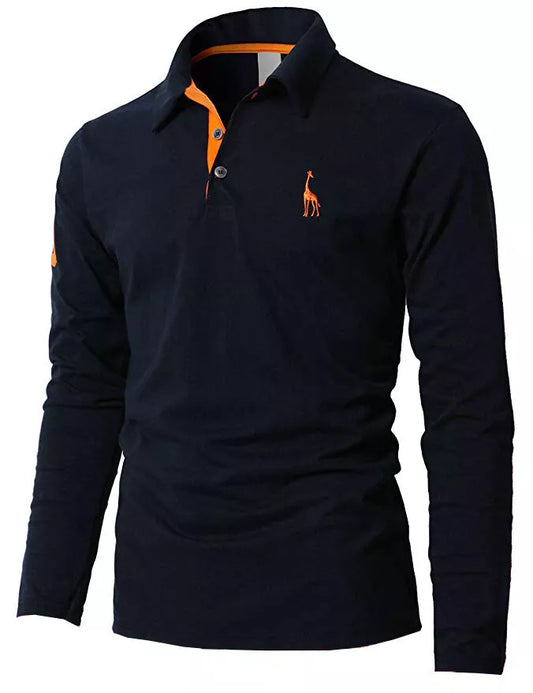 Mens Polo Shirt Stretchable Slim Fit Top Long Sleeve Contrast Colours PL17