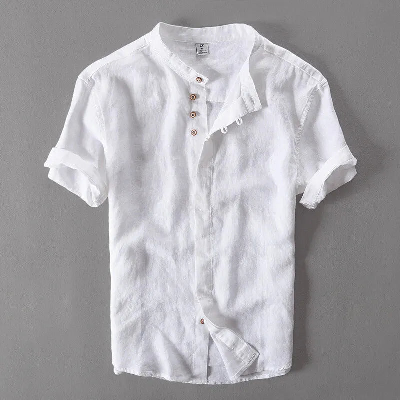 Mens Grandad Casual Shirts Mandarin Smart Shirt Short Sleeve Summer Top RH05